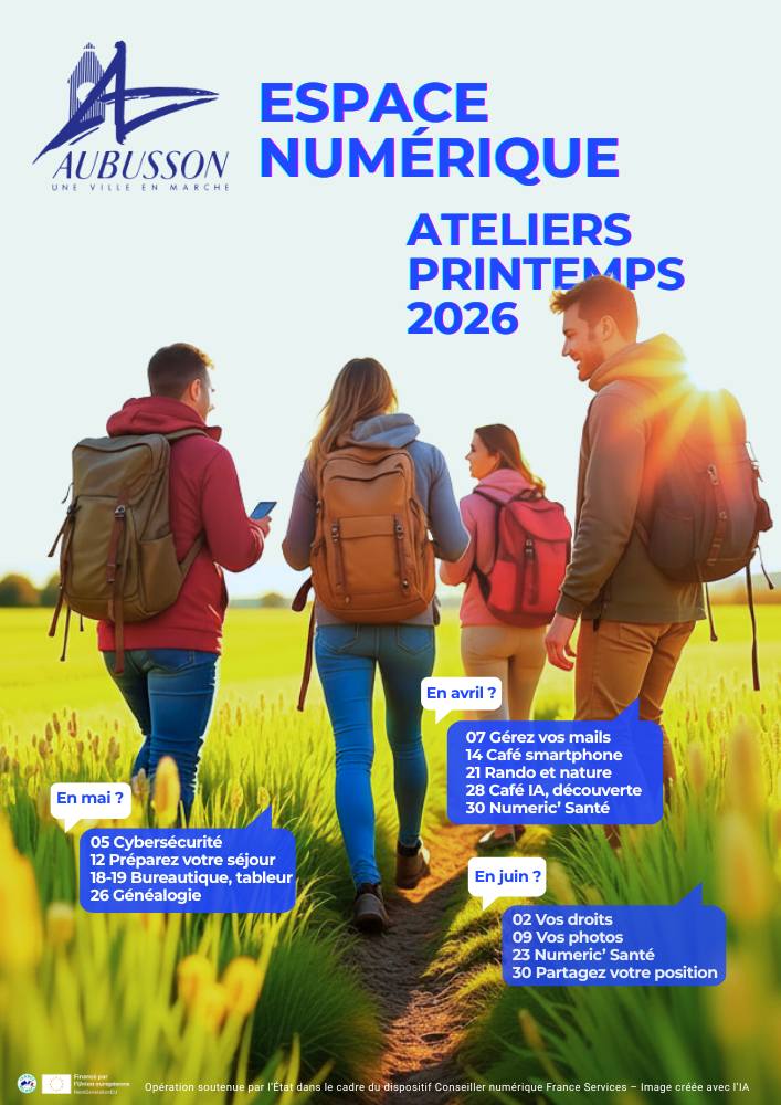 Programme des ateliers collectifs de l’Espace numérique d’Aubusson, Printemps 2026 :