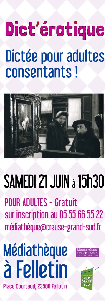 Contrairement aux précédentes dictées proposées par la médiathèque, celle-ci est réservée aux adultes – consentants !
