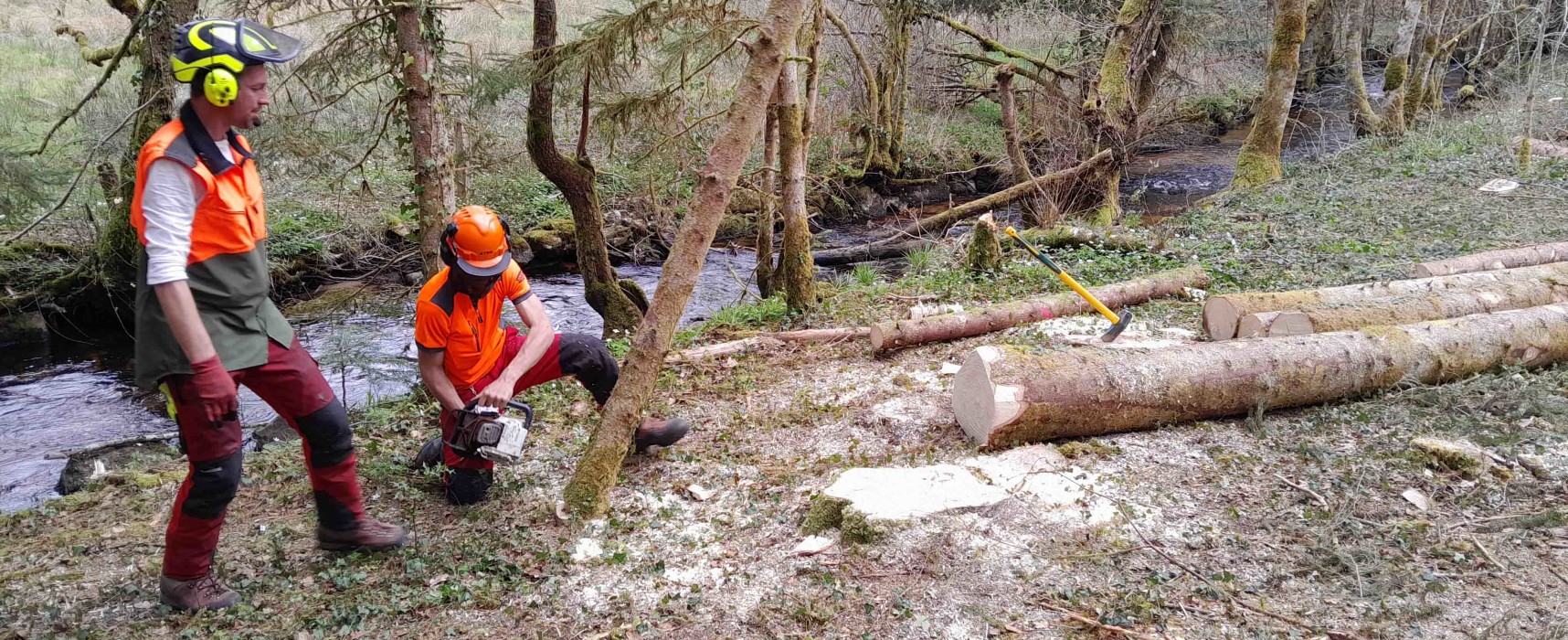 Dans le cadre du Contrat Territorial « Sources en Action » (Vienne Amont), la communauté de communes a lancé une opération de désenrésinement sur les berges de « la Feuillade » à La-Villedieu. L’objectif a été de retirer les résineux sur une bande de 5 mètres en berge afin de permettre le retour d’une végétation rivulaire adaptée et fonctionnelle qui participera à améliorer la qualité de l’eau et à protéger le milieu