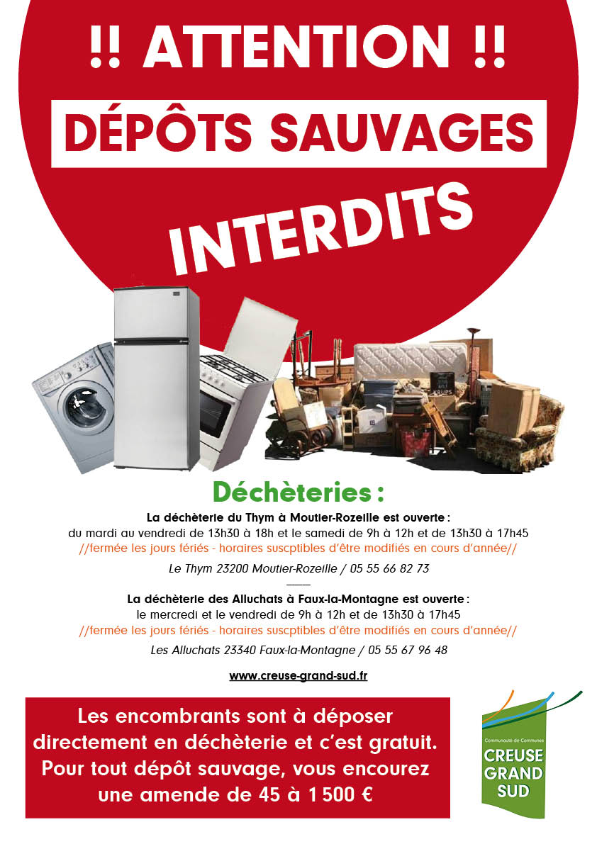 Déchèterie intercommunale des Alluchats – Les Alluchats – 23340 Faux-la-Montagne – 05 55 67 96 48